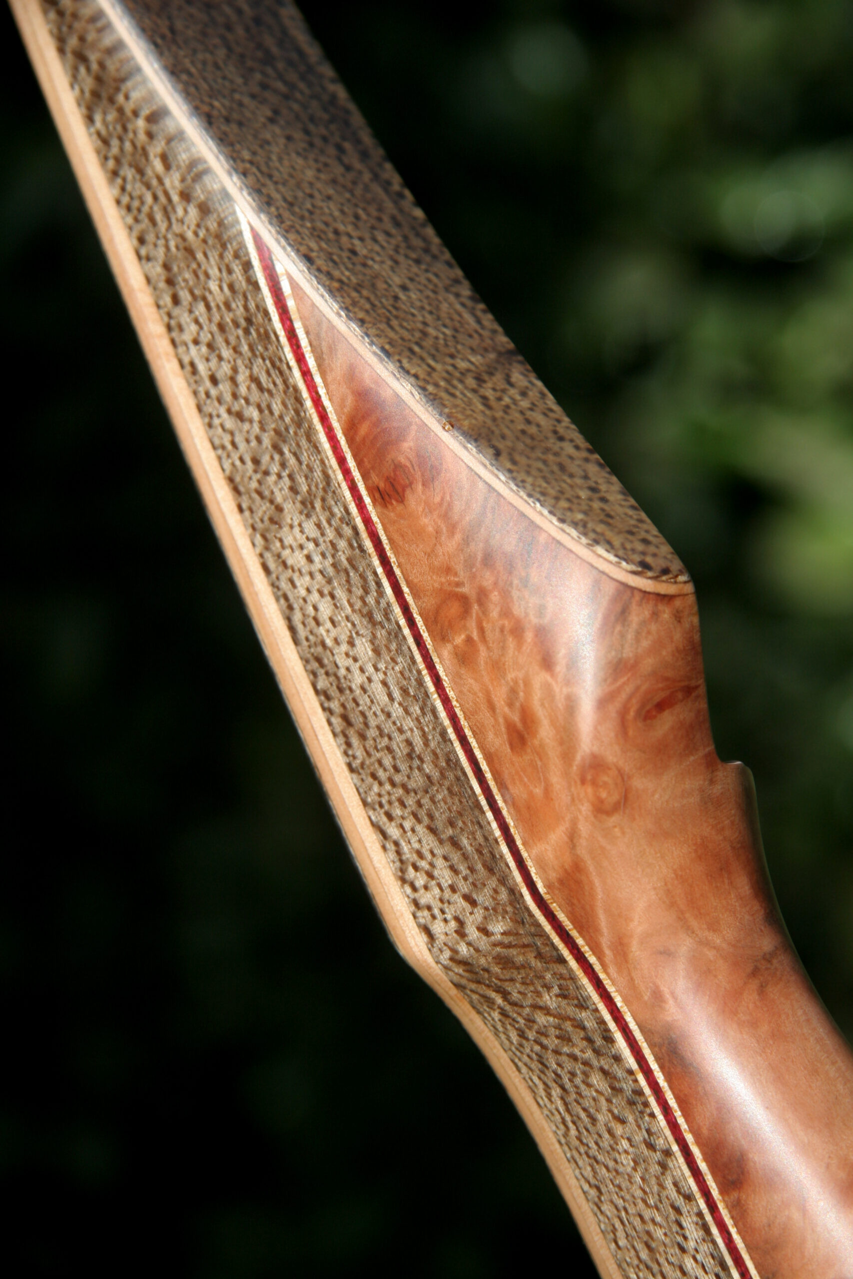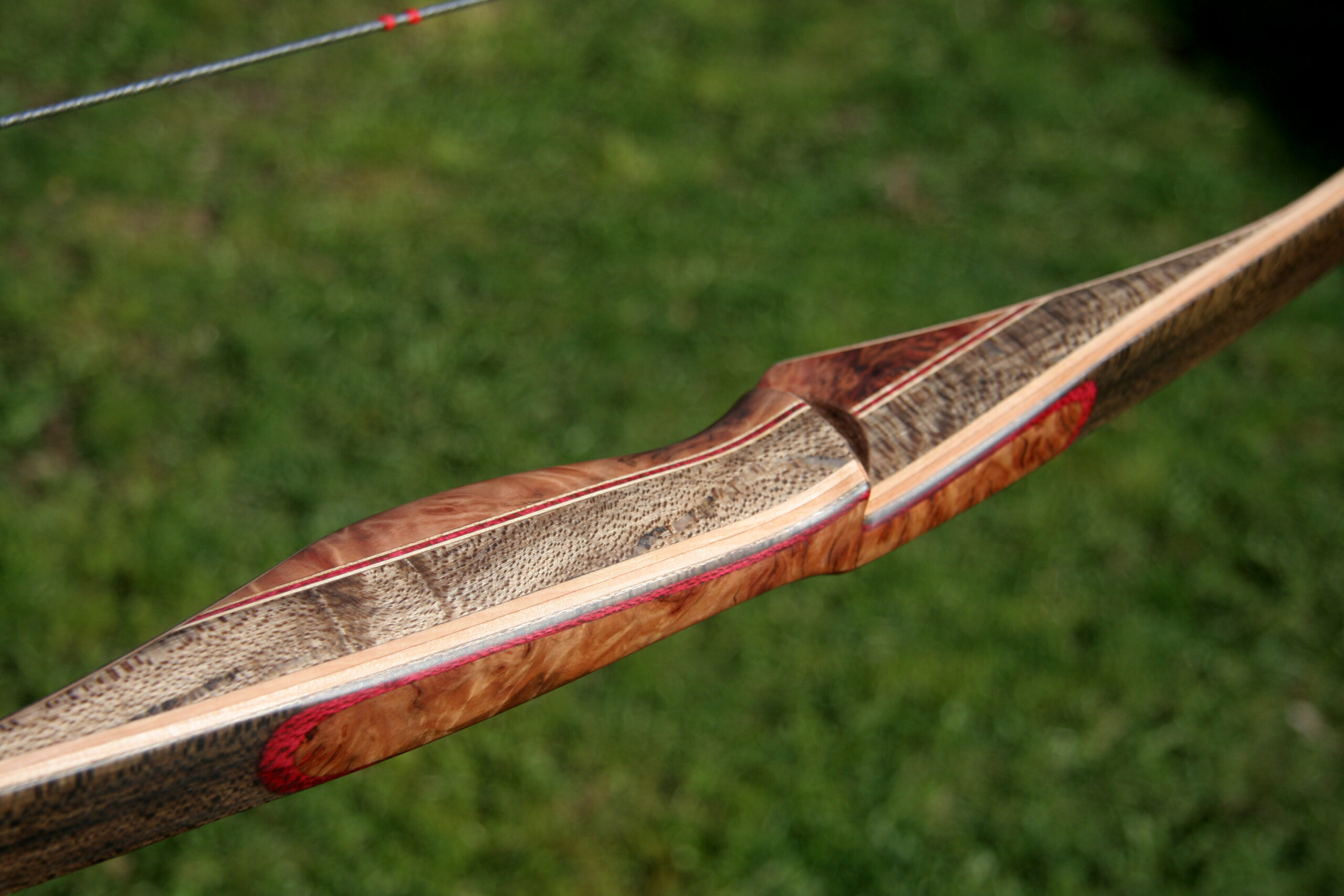 Limbs: Lenga core (Nothofagus Pumilio, the wood used by the natives of Tierra del Fuego Island to craft their selfbows for thousands of years), Radal veneers and clear glass.